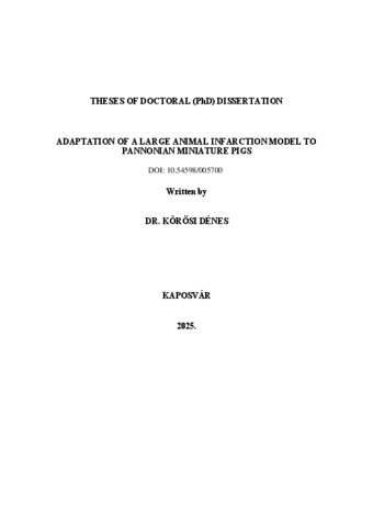 Kőrösi, Dénes (2025) Nagyállat infarktus modell adaptálása pannon törpesertésekre. PhD thesis, Magyar Agrár- és Élettudományi Egyetem. DOI: 10.54598/005700.