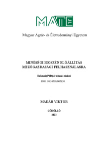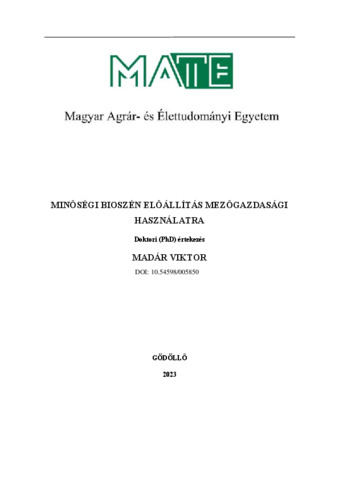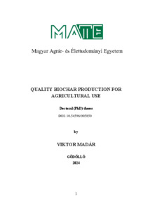 Madár, Viktor (2025) Minőségi bioszén előállítás mezőgazdasági használatra. PhD thesis, Magyar Agrár- és Élettudományi Egyetem. DOI: 10.54598/005850.