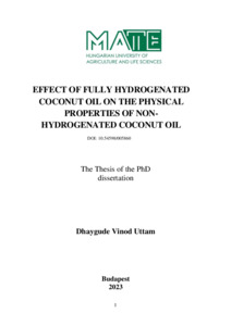 Dhaygude, Vinod Uttam (2025) Effect of fully hydrogenated coconut oil on the physical properties of non-hydrogenated coconut oil. PhD thesis, Magyar Agrár- és Élettudományi Egyetem. DOI: 10.54598/005860.