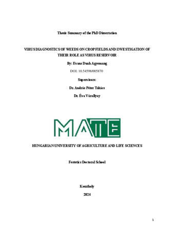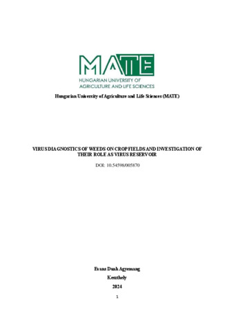 Agyemang, Evans Duah (2025) Virus Diagnostics of Weeds on Crop Fields and Investigation of Their Role as Virus Reservoir. PhD thesis, Magyar Agrár- és Élettudományi Egyetem. DOI: 10.54598/005870.