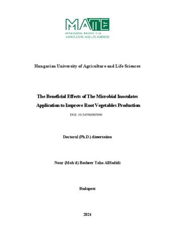 Alhadidi, Nour Moh`d Basheer Taha (2025) The Beneficial Effects of the Microbial Inoculates Application to Improve Root Vegetables Production. PhD thesis, Magyar Agrár- és Élettudományi Egyetem. DOI: 10.54598/005890.
