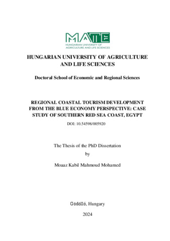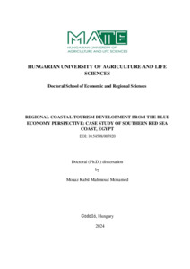 Kabil, Moaaz Mahmoud Mohamed (2025) Regional Coastal Tourism Development from the Blue Economy Perspective: Case Study of the Southern Red Sea Coast, Egypt. PhD thesis, Magyar Agrár- és Élettudományi Egyetem. DOI: 10.54598/005920.