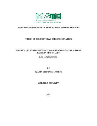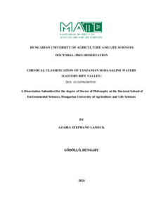 Lameck, Azaria Stephano (2025) Chemical Classification of Tanzanian Soda-Saline Waters (Eastern Rift Valley). PhD thesis, Magyar Agrár- és Élettudományi Egyetem. DOI: 10.54598/005930.