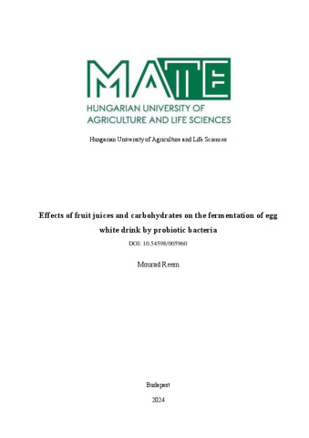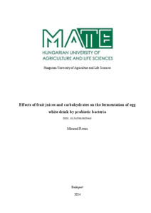 Mourad, Reem (2025) Effects of fruit juices and carbohydrates on the fermentation of egg white drink by probiotic bacteria. PhD thesis, Magyar Agrár- és Élettudományi Egyetem. DOI: 10.54598/005960.