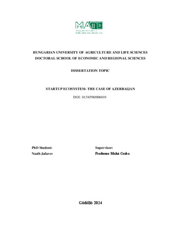 Jafarov, Nasib (2025) Startup Ecosystem- The Case of Azerbaijan. PhD thesis, Magyar Agrár- és Élettudományi Egyetem. DOI: 10.54598/006010.