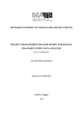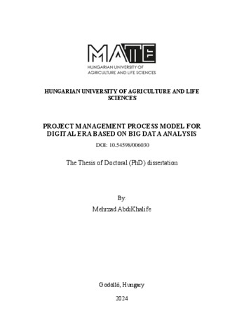 AbdiKhalife, Mehrzad (2025) Project Management Process Model for Digital Era Based on Big Data Analysis. PhD thesis, Magyar Agrár- és Élettudományi Egyetem. DOI: 10.54598/006030.