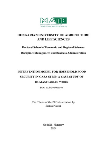 Nassar, Samia (2025) Intervention Model for Household Food Security in Gaza Strip: A Case Study of Humanitarian Work. PhD thesis, Magyar Agrár- és Élettudományi Egyetem. DOI: 10.54598/006040.