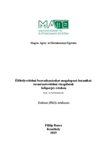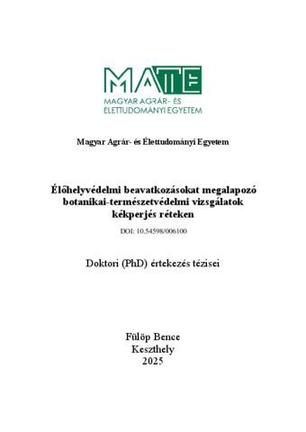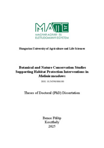 Fülöp, Bence (2025) Élőhelyvédelmi beavatkozásokat megalapozó botanikai-természetvédelmi vizsgálatok kékperjés réteken. PhD thesis, Magyar Agrár- és Élettudományi Egyetem. DOI: 10.54598/006100.