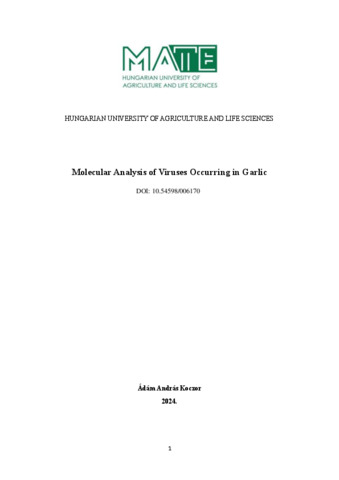 Koczor, Ádám András (2025) Fokhagymán előforduló vírusok molekuláris vizsgálata. PhD thesis, Magyar Agrár- és Élettudományi Egyetem. DOI: 10.54598/006170.