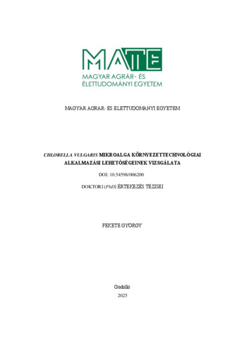 Fekete, György (2025) Chlorella vulgaris mikroalga környezettechnológiai alkalmazási lehetőségeinek vizsgálata. PhD thesis, Magyar Agrár- és Élettudományi Egyetem. DOI: 10.54598/006200.