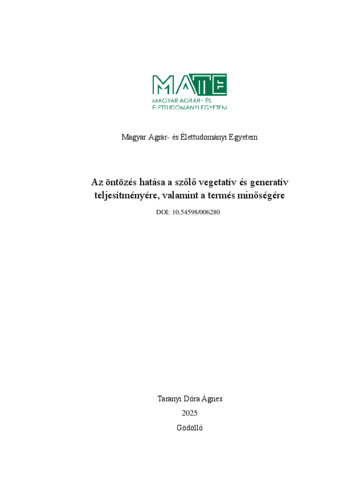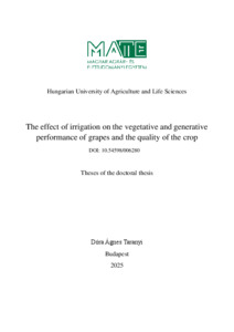 Taranyi, Dóra Ágnes (2025) Az öntözés hatása a szőlő vegetatív és generatív teljesítményére, valamint a termés minőségére. PhD thesis, Magyar Agrár- és Élettudományi Egyetem. DOI: 10.54598/006280.