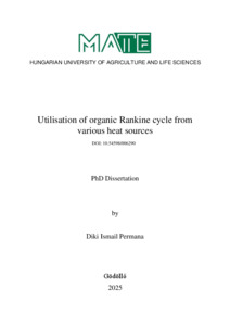 Permana, Diki Ismail (2025) Utilisation of organic Rankine cycle from various heat sources. PhD thesis, Magyar Agrár- és Élettudományi Egyetem. DOI: 10.54598/006290.
