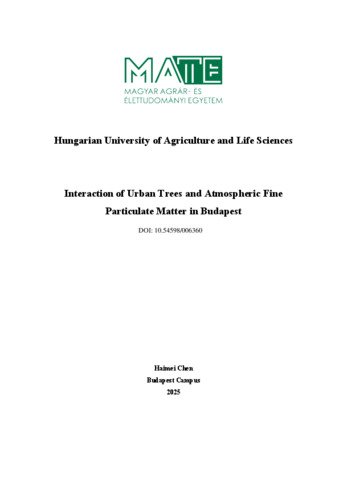 Chen, Haimei (2025) Interaction of Urban Trees and Atmospheric Fine Particulate Matter in Budapest. PhD thesis, Magyar Agrár- és Élettudományi Egyetem. DOI: 10.54598/006360.
