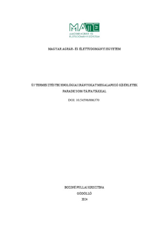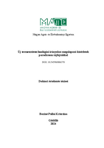 Boziné Pullai, Krisztina (2025) Új termesztéstechnológiai irányokat megalapozó kísérletek paradicsom-tájfajtákkal. PhD thesis, Magyar Agrár- és Élettudományi Egyetem. DOI: 10.54598/006370.