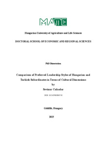 Çuhadar, Sevinur (2025) Comparison of Preferred Leadership Styles of Hungarian and Turkish Subordinates in Terms of Cultural Dimensions. PhD thesis, Magyar Agrár- és Élettudományi Egyetem. DOI: 10.54598/006710.