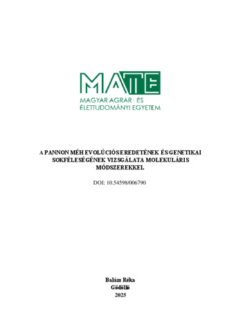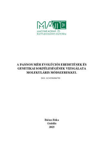 Balázs, Réka (2025) A pannon méh evolúciós eredetének és genetikai sokféleségének vizsgálata molekuláris módszerekkel. PhD thesis, Magyar Agrár- és Élettudományi Egyetem. DOI: 10.54598/006790.