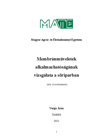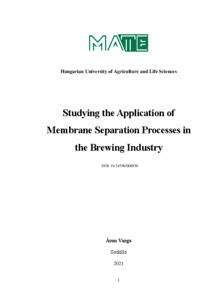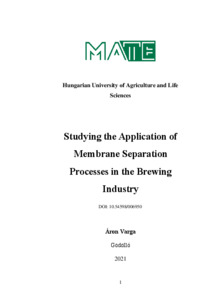Varga, Áron (2022) Studying the Application of Membrane Separation Processes in the Brewing Industry. PhD thesis, Magyar Agrár- és Élettudományi Egyetem. DOI: 10.54598/006950.