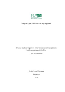 Szabó, Luca Krisztina (2025) Prunus fajokon végzett in vitro vírusmentesítési eljárások hatékonyságának értékelése. PhD thesis, Magyar Agrár- és Élettudományi Egyetem. DOI: 10.54598/007030.