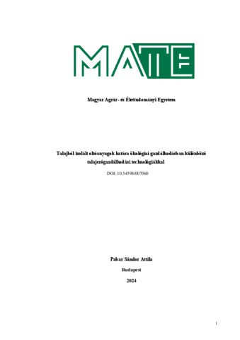 Pabar, Sándor Attila (2025) Talajból izolált oltóanyagok hatása ökológiai gazdálkodásban különböző talajerőgazdálkodási technológiákkal. PhD thesis, Magyar Agrár- és Élettudományi Egyetem. DOI: 10.54598/007060.