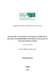 Kovács, Endre Béla (2024) Fénymag és szárazborsó kultúrák gyomviszonyainak elemzése Gyomaendrőd és Szarvas térségében, ökológiai és konvencionális területeken. PhD thesis, Magyar Agrár- és Élettudományi Egyetem. DOI: 10.54598/007120.